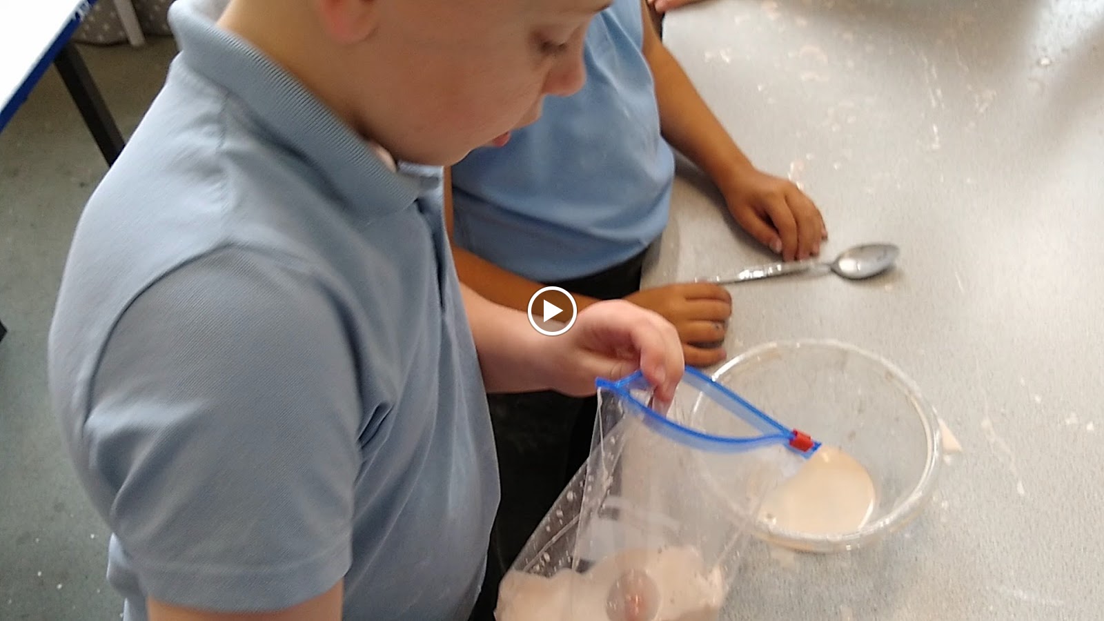 To test the strength of the cornflour mix Mrs Davies put a raw egg in a bag with the mixture and sealed it. We asked Mr Coles to drop it from a high point to the floor to see if the egg would break....see our video below to find out the answer.